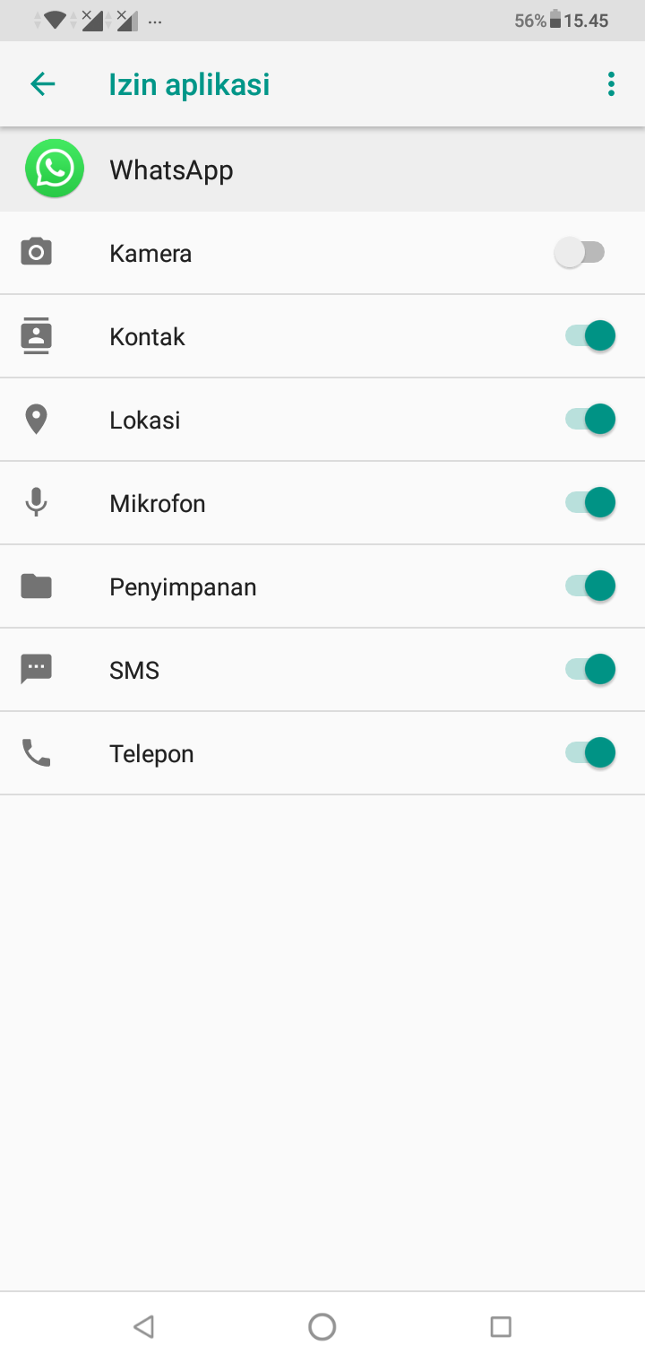 – Di bagian Izin Aplikasi terlihat Izin kamera mati yang membuat Saat Video Call Gambar Mati.
